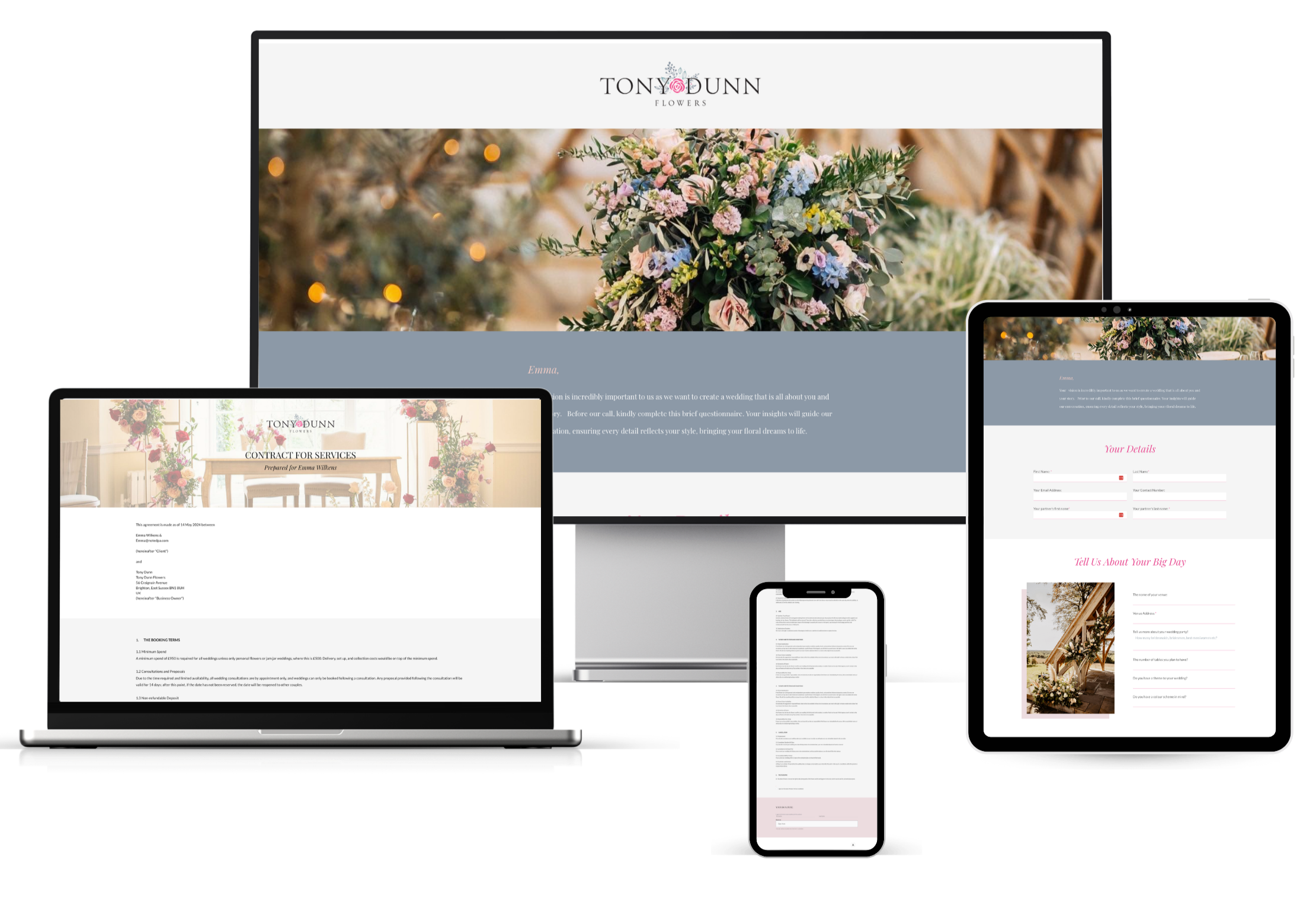 Tony knows where every client is, what’s coming up, and what needs his attention, without second guessing or digging through his inbox. The whole experience feels more like his brand too. From the first enquiry to the final details, it now reflects the same care and attention he puts into his flowers. And most importantly, he has more mental space.